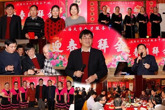 1月17日,人才服务中心举办了2013年迎新团拜会。活动现场,壁上悬挂了大红中国结,周边拉上了缤纷的彩幕,“凝心聚力谋发展,和谐奋进创未来”的两条醒目对联凸显了团拜活动的主题,烘托了欢乐、和谐的喜庆氛围。校党委书记于信汇亲临中心团拜会,校党委组织部、宣传部、人事处、党办、校办、信访办及直属单位党委等主要领导与人才中心全体干部职工欢聚一堂,欢歌笑语、喜迎新年、畅述友情、共话未来。